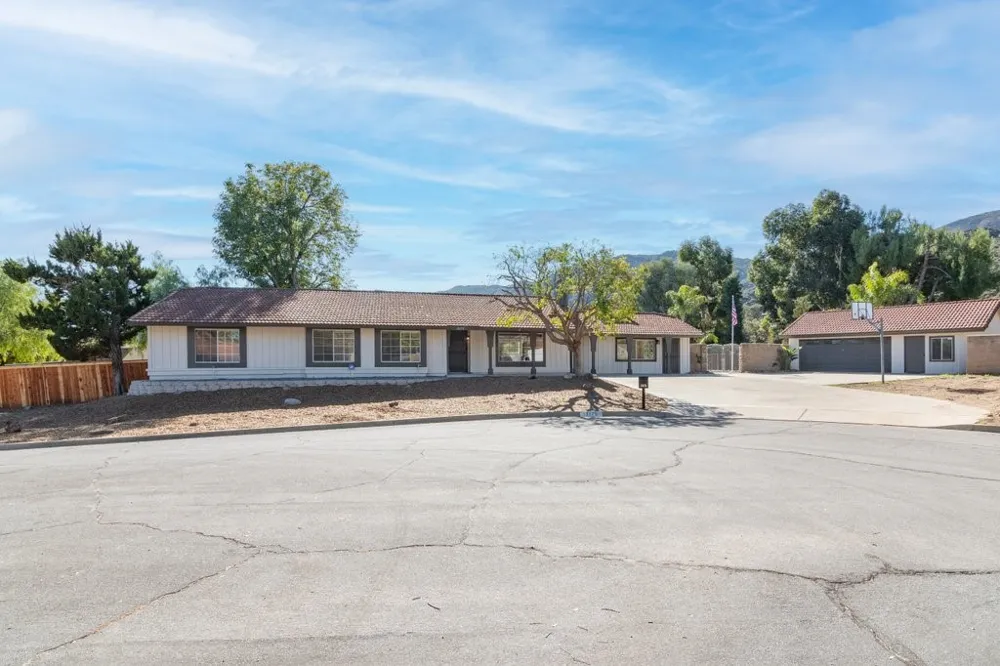 Stunning Fully Remodeled Ranch Home on Nearly 1 Acre with Pool, Views & Endless Possibilities. Welcome to this beautifully updated and completely remodeled 5-bedroom, 3-bath home offering just under 3,400 sq ft of spacious, single-story living on a sprawling cul-de-sac lot. Every inch of this residence has been thoughtfully upgraded to blend modern comfort with timeless style. Step inside to a brand-new designer kitchen featuring white soft-close cabinetry, granite countertops, center island, and stainless steel appliances. The kitchen opens seamlessly to a generous dining area and an inviting family room accented by a charming brick-mantel fireplace. A convenient custom-built space just off the kitchen serves as a large pantry, laundry area, and utility room. Down the hall, you’ll find two oversized primary suites, each with its own fully updated bathroom and direct access to the outdoors—ideal for multigenerational living or guest accommodations. Three additional bedrooms share a third remodeled bathroom, providing plenty of space. At the opposite end of the home sits a massive great room—perfect for a game room, home theater, gym, or anything you envision. Recent upgrades include: a completely new kitchen; updated bathrooms; new ceiling fans, lighting, and plumbing fixtures; wood-grain tile flooring; new carpet in bedrooms; fresh interior and exterior paint; serviced and updated dual HVAC system; updated roof; and new concrete walkways and patios. Step outside and enjoy everything this expansive homesite offers—nearly half the cul-de-sac, with beautiful mountain views and a peek-a-boo view of the lake. Make a splash down the slide into the sparkling pool or unwind in the spa. The property is zoned for horses and offers ample room for a new barn or corrals, with easy access to nearby riding trails. Not a horse owner? There’s more than enough space for RVs, boats, motorcycles, and all your recreational toys, with convenient access through a double side gate. Existing structures include a two car garage with attached workshop, large barn, fenced dog kennel, and an expanded driveway providing abundant off-street parking. Located in a low-tax area with NO HOA, this home offers the perfect blend of privacy, comfort, and convenience—close to schools, shopping, the freeway access. Beautifully updated and meticulously maintained, this rare property is ready to welcome its next lucky homeowner. Don’t miss your chance to fall in love with this exceptional home!